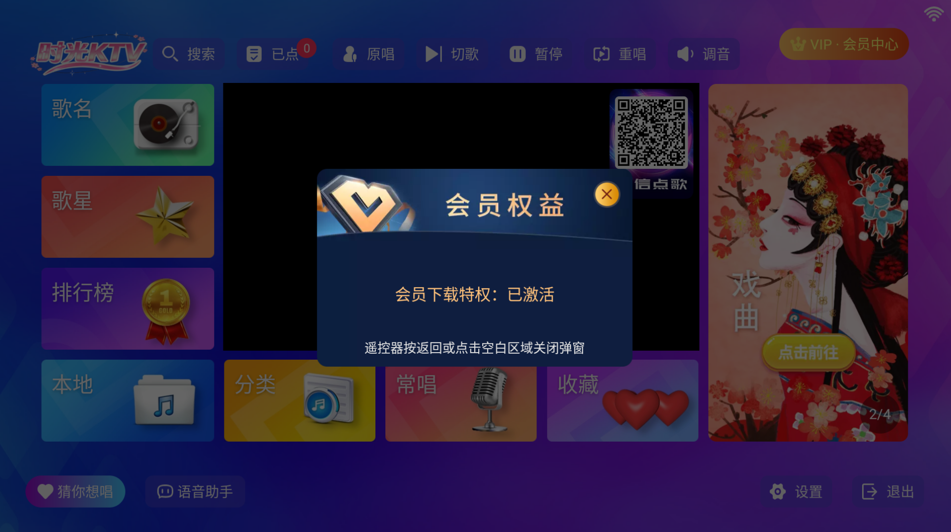 家庭必备KTV 电视必装 打开即是会员 支持微信一键扫码点歌 支持语音点歌 支持遥控器控制 串烧 电音 慢摇 打碟随机模式等